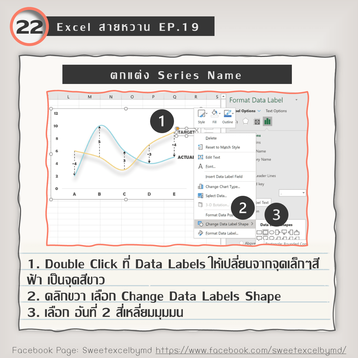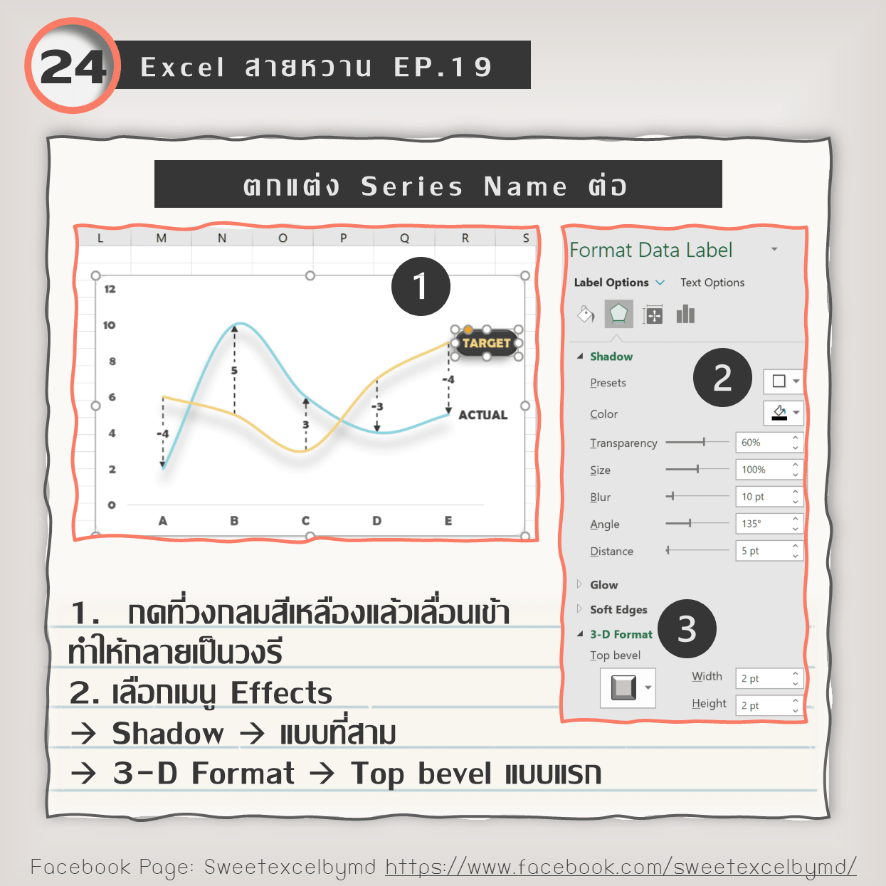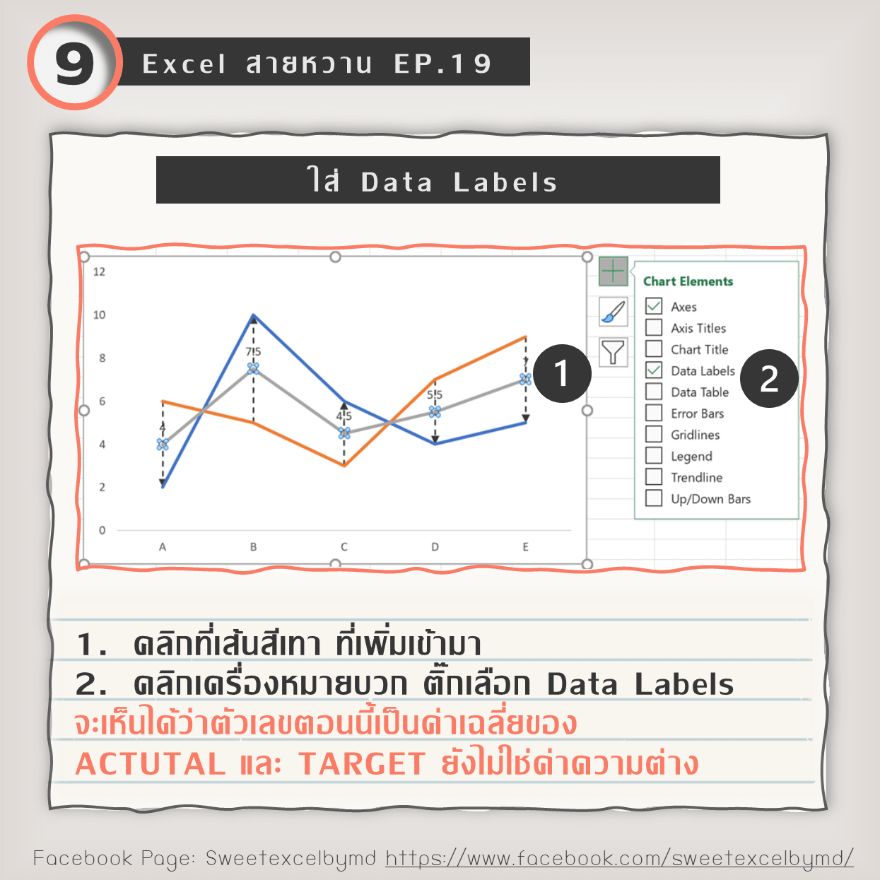 ใส่ Labels บอกความต่างระหว่าง Target กับ Actual