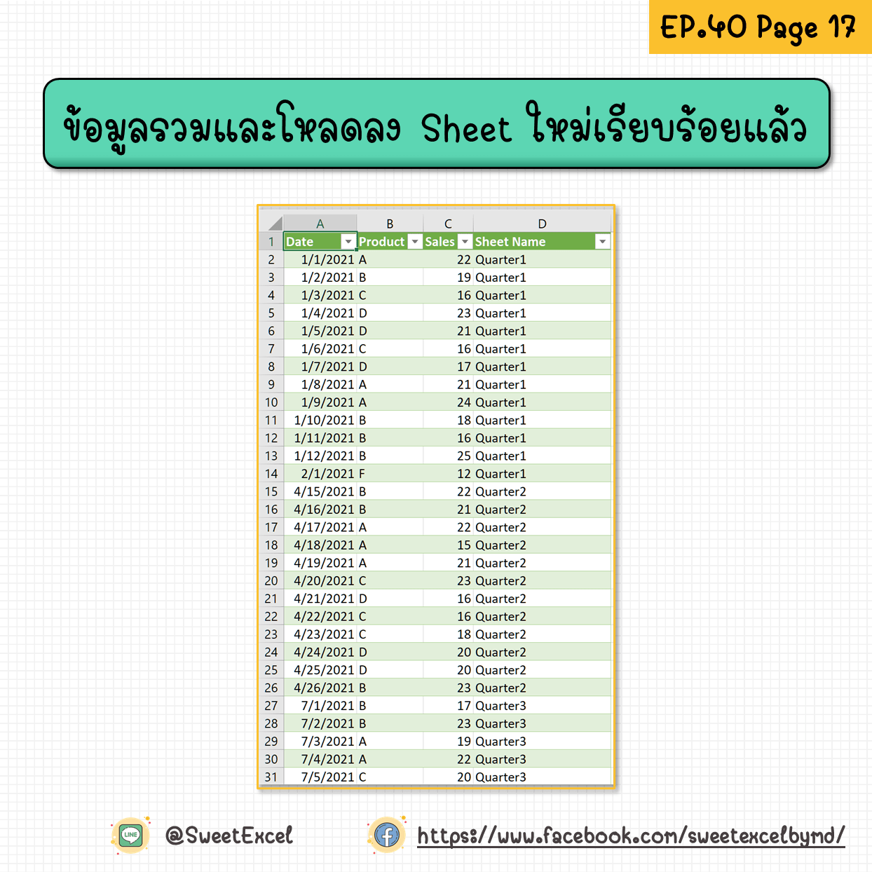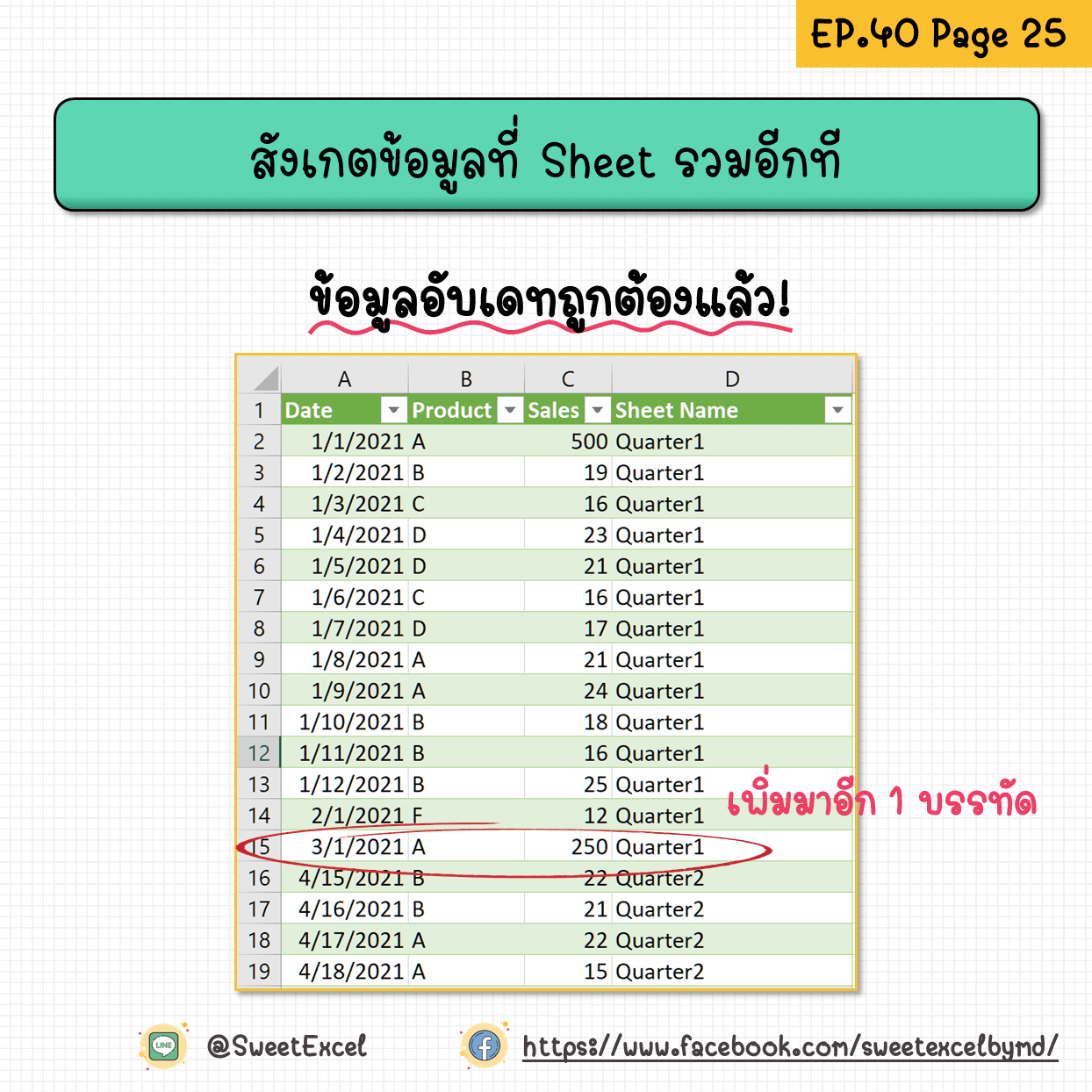 รวมข้อมูลจากหลายๆ Sheet ในไฟล์เดียวกัน! เรียกร้องกันมาเยอะแยะเลยจาก EP. 36 ที่แอดสอนรวมไฟล์ไปก่อนหน้านี้ แบบนี้ก็ต้องจัดให้แล้ว!