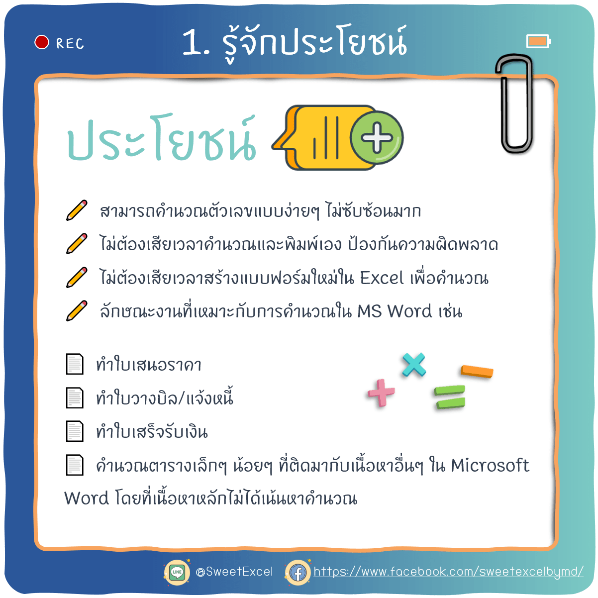 ลักษณะงานพวกนี้เหมาะกับการใช้การคำนวณใน MS Word และควรอ่าน EP. นี้มากๆ