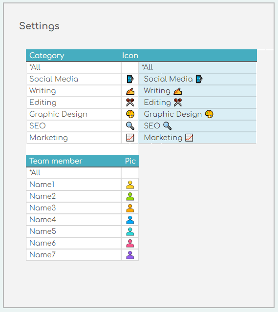 ตั้งค่ารายชื่อบุคคลในทีมได้ 7 คน สามารถปรับ หรือแก้ไขสูตรเพื่อเพิ่มหรือลดจำนวนคนเองได้