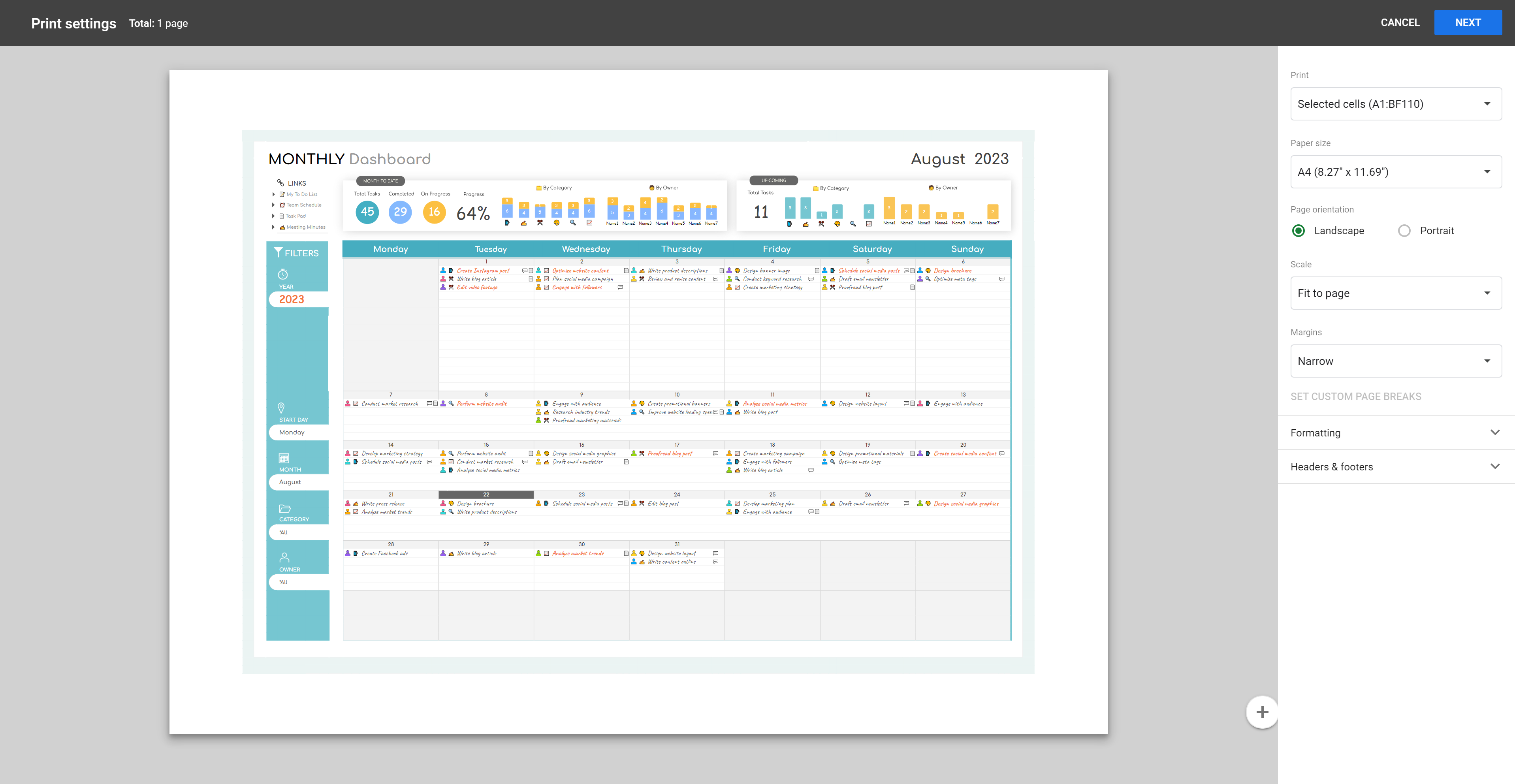 ✨ Template จะแสดงผลเป็น Dashboard ประจำเดือน สามารถติดตามความคืบหน้าของงานในแต่ละวันได้ นอกจากนี้ยังมีกราฟสรุปจำนวนงาน และความคืบหน้าให้ดูด้วย