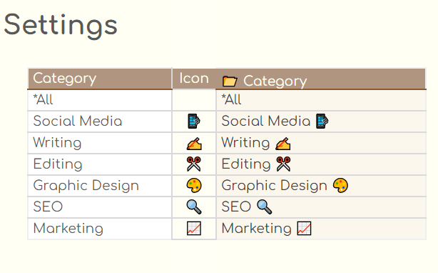 เปลี่ยนประเภทงาน และ Icon ของประเภทงานต่างๆ ได้ด้วยตัวเองง่ายๆ แค่ลบพิมพ์ใหม่ในช่องที่เตรียมไว้ให้