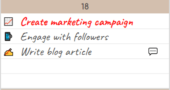 นอกเหนือจากการจดงานที่ต้องทำต่างๆ ให้แต่ละวัน ยังสามารถจดตารางงาน หรือตารางการประชุมที่ต้องทำในแต่ละเวลาได้ด้วย โดยที่ตารางจะแสดงเป็นรายสัปดาห์