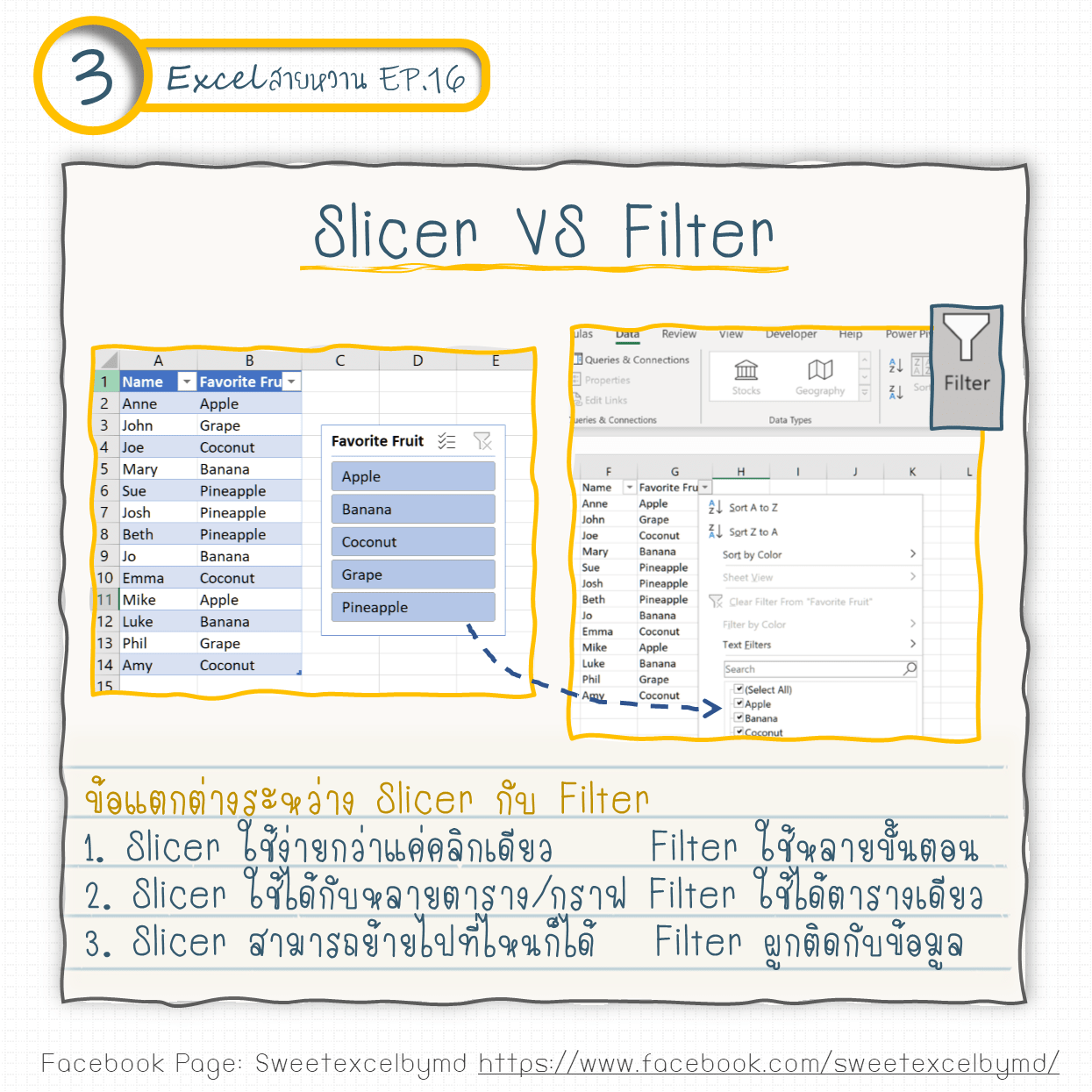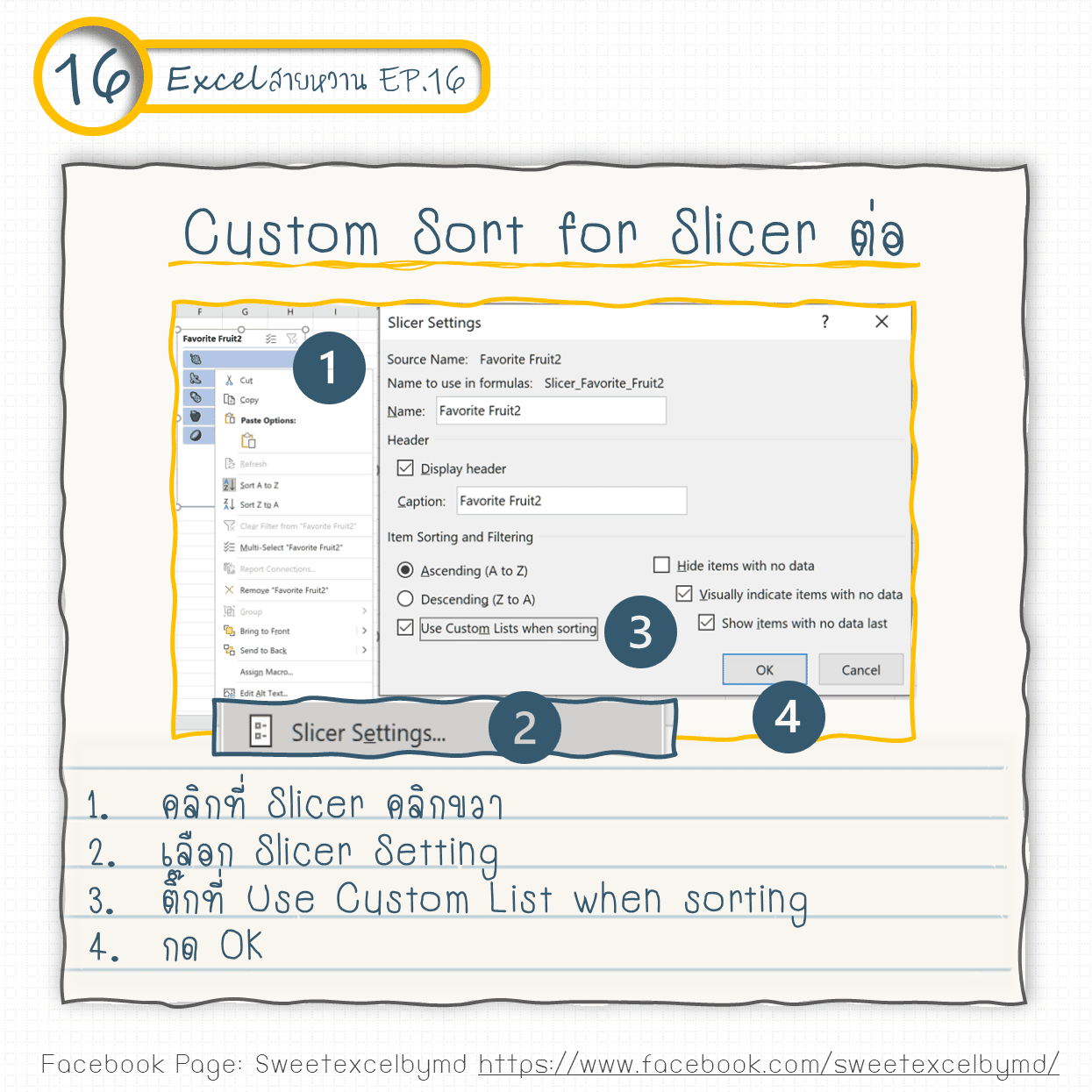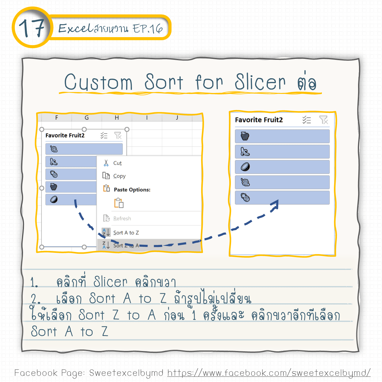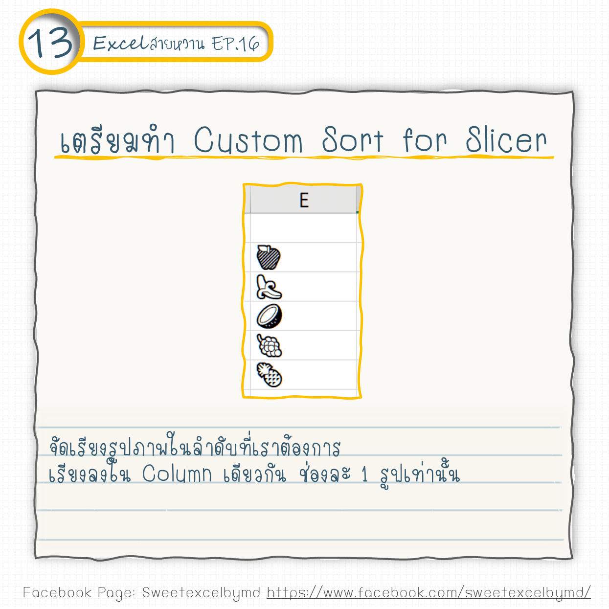 นอกจากวิธีการทำแล้ว EP นี้ยังแถมคีย์ลัด เคล็บลับการหารูปสวยๆ ไว้ใส่ใน Slicer และ การทำ Custom Sort ให้ Slicer อีกด้วย รับรองว่า ง่ายๆ แต่หลายๆคนอาจจะยังไม่เคยใช้